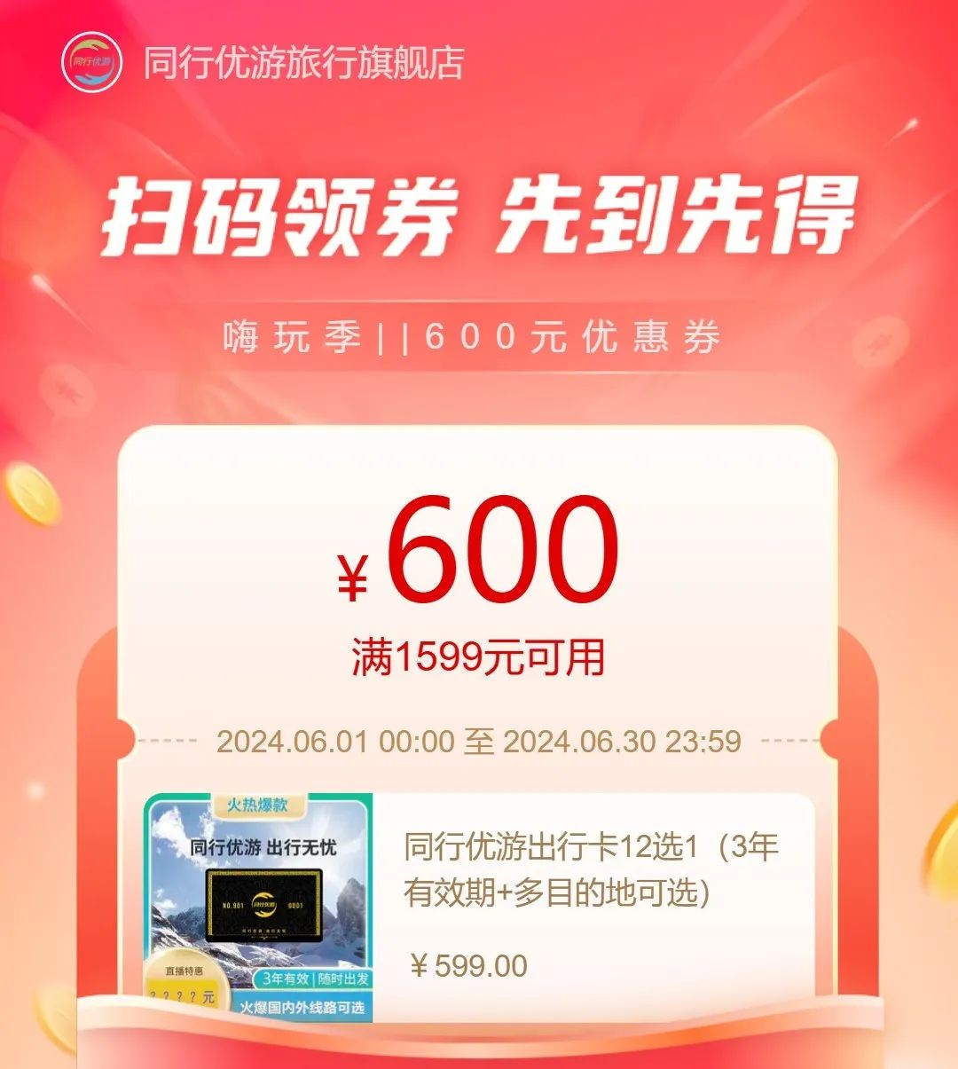 600元超值优惠券,1599旅游卡专属。1599旅游定制卡,精选12条经典路线,国内9条,国外3条。12选1,超值优惠~