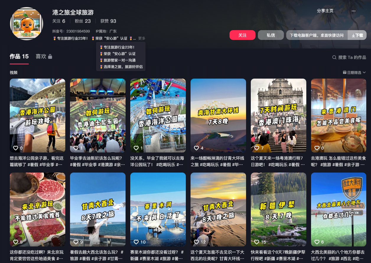 [庆祝]图二/图三:港之旅抖音二维码及主页