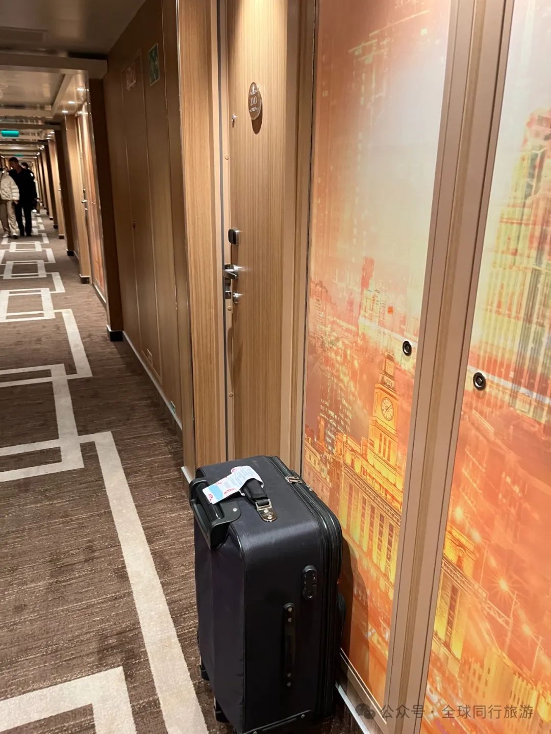1、登船后大家根据船票上的房间号码乘坐电梯或者走楼梯到达自己的房间,一般在您回到房间前,之前托运的行李就会在您的房间门口等您了。