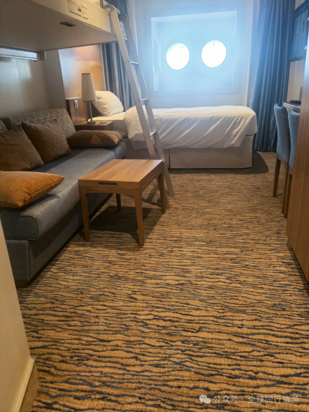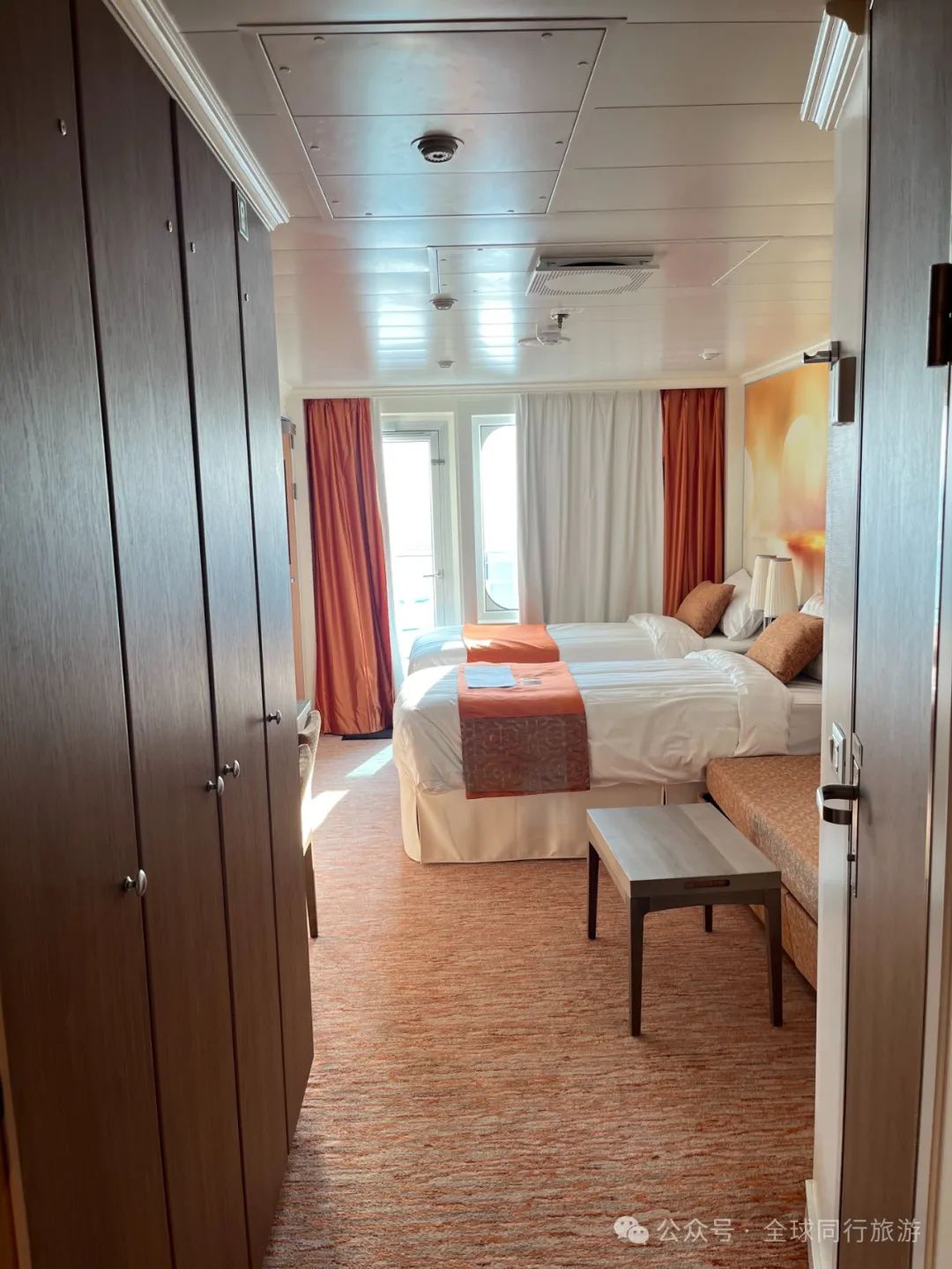2、接下来就看一下阳台双人间、內舱双人间、海景双人以及四人间的房间状态吧~