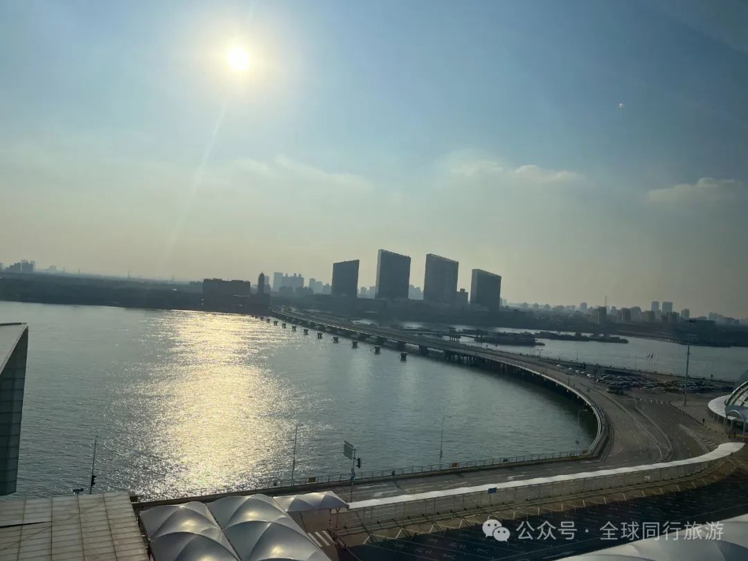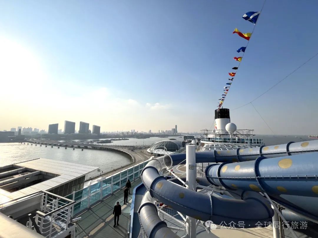甲板风光:这个时候还没有启航,可以在甲板上看到整个吴淞口邮轮港口的风景哦~