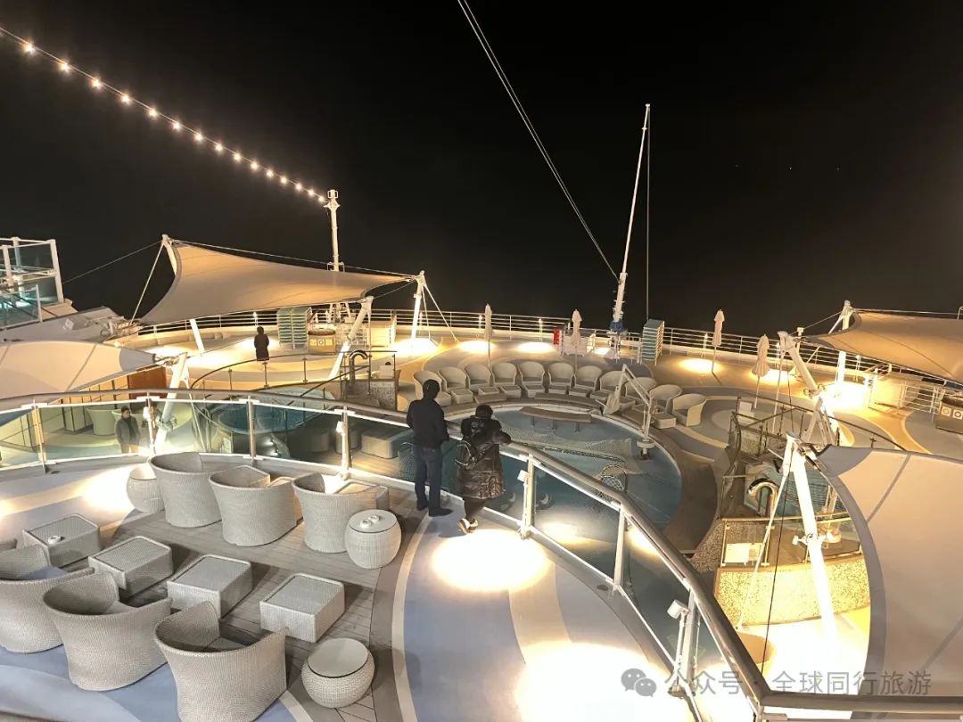 傍晚的时候吃完晚餐,到甲板上好好欣赏海上的落日和晚霞吧~
