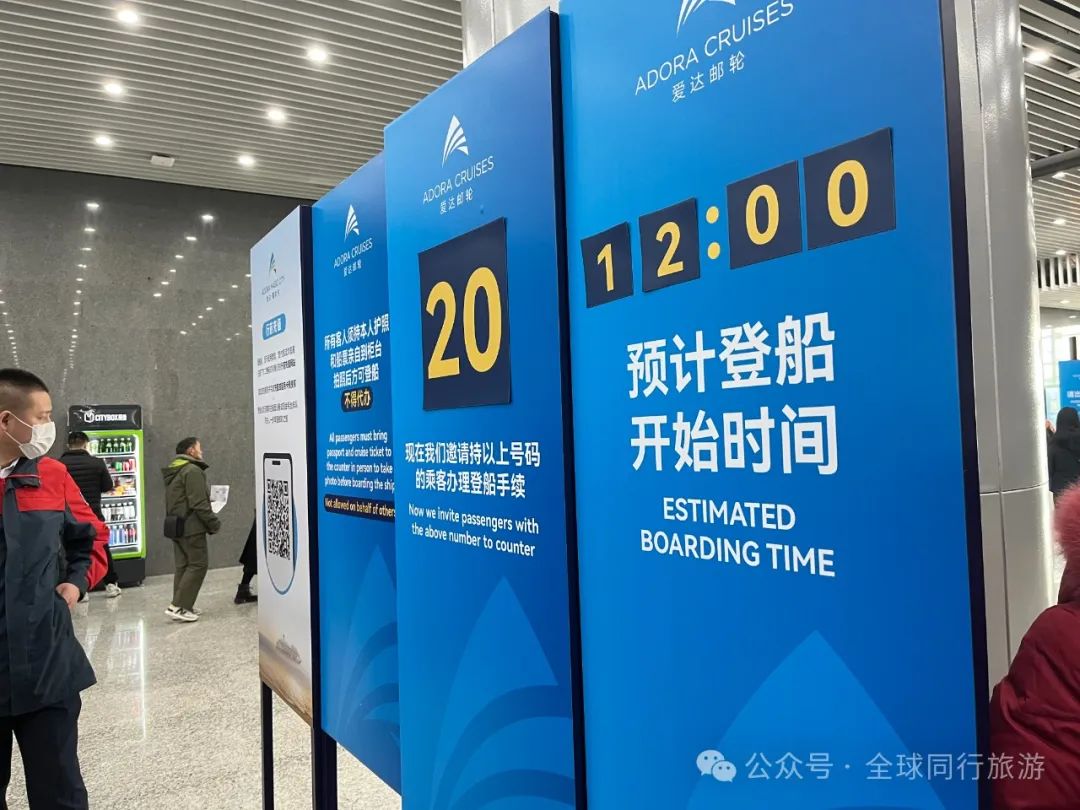然后进入候船大厅,工作人员会给大家的船票上贴上一张排队上船的号码,叫到号码就可以前往柜台录入信息、现场拍照,这期间工作人员会将您的护照收取保存,在第二天上岸游玩之前会有工作人员将您的护照送到房间的,醉后根据工作人员的指引刷船票顺利登船。