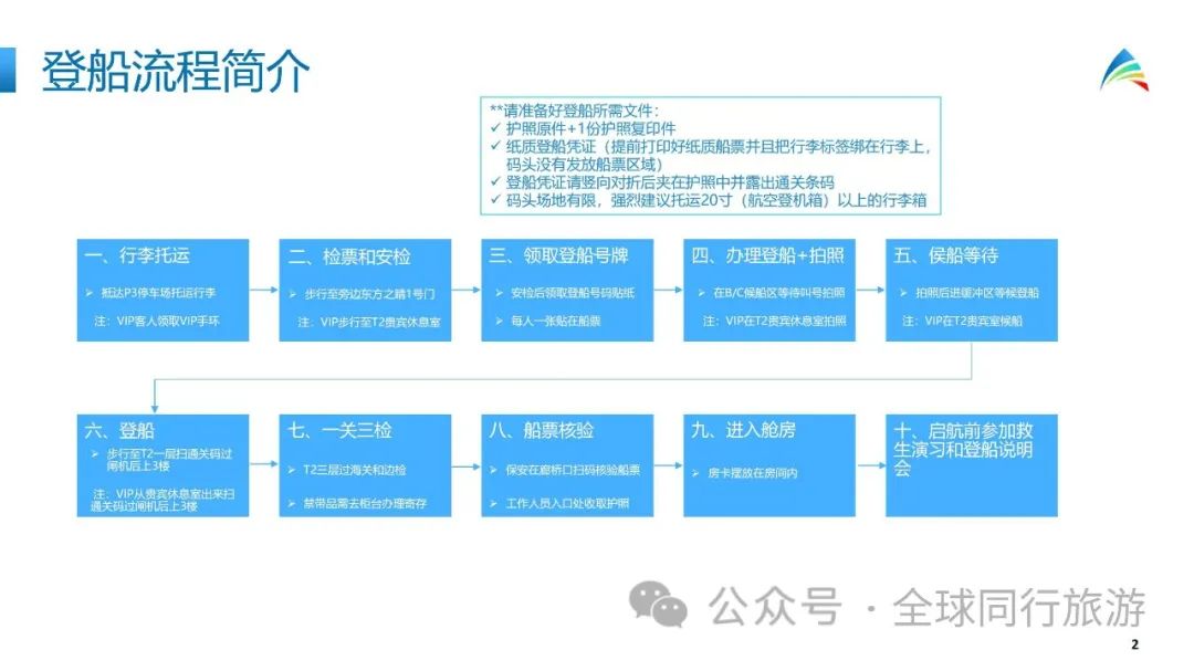 3、办理好行李托运之后,可以在出团群内关注领队位置,跟领队汇合,领队会告诉大家上船手续和注意事项,以及上船后的ji合地点和时间,上船后领队也会带大家实地了解一圈船上的游乐设施以及需要注意的事项。