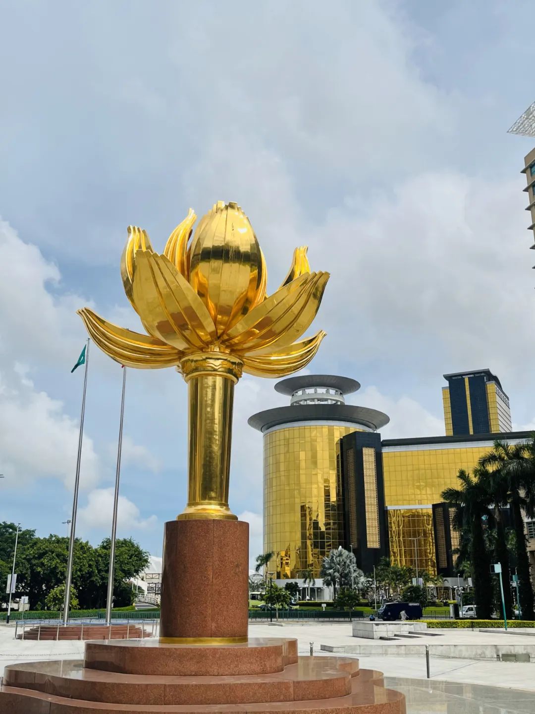 第二站,来到金莲花广场,位于中国中国澳门新口岸高美士街、毕仕达大马路及友谊大马路之间,是为庆祝1999年中国澳门zhu权移交而建设的广场,已成为中国澳门著ming地标及旅游景点。“盛世莲花”主体部分由花茎、花瓣和花蕊组成,共16个造型,采用青铜铸造,表面贴金,重6.5吨;基座部分由23块红色花岗岩相叠组成。莲花是中华人民共和国中国澳门特别行政区的区花,莲花盛开,象征中国澳门永远繁荣昌盛。每年国庆节、中国澳门回归纪念日,中国澳门特区zheng府在金莲花广场举行升guo旗、区旗仪式。