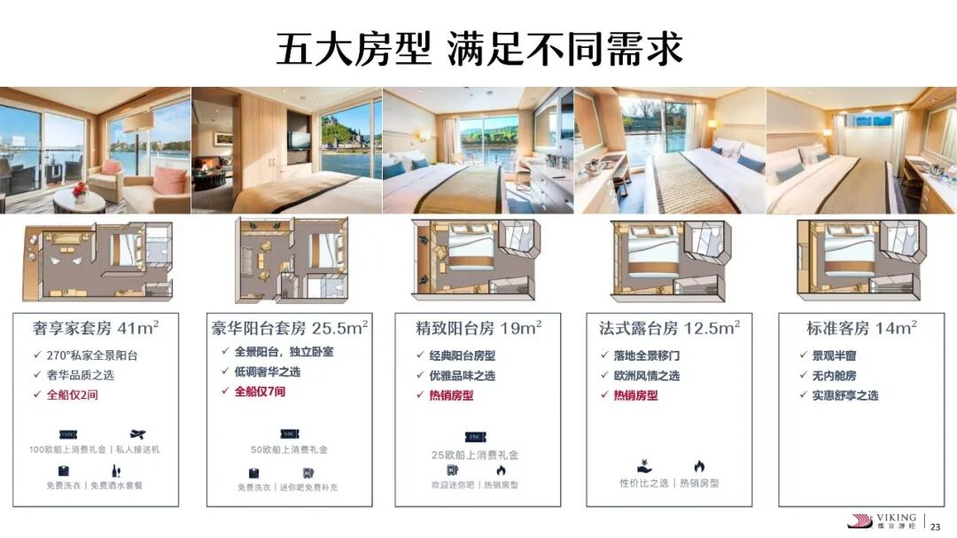 ④全船客房可观景,处处贴心细节确保舒适。五大房型满足不同需求,采用优雅的斯堪的纳维亚设计风格,透明设计不会错过一丝风景。