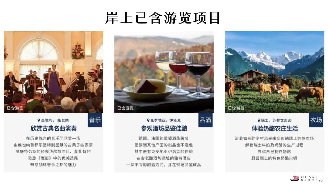 ⑤优雅人文慢旅,无幼童。岸上已含游览项目:在奥地利,维也纳欣赏古典名曲演奏、在克罗地亚,伊洛克参观酒坊品鉴佳酿、瑞士,苏黎世周边体验奶酪农庄生活,还有超12项升级游览/特色体验「推荐」项目。