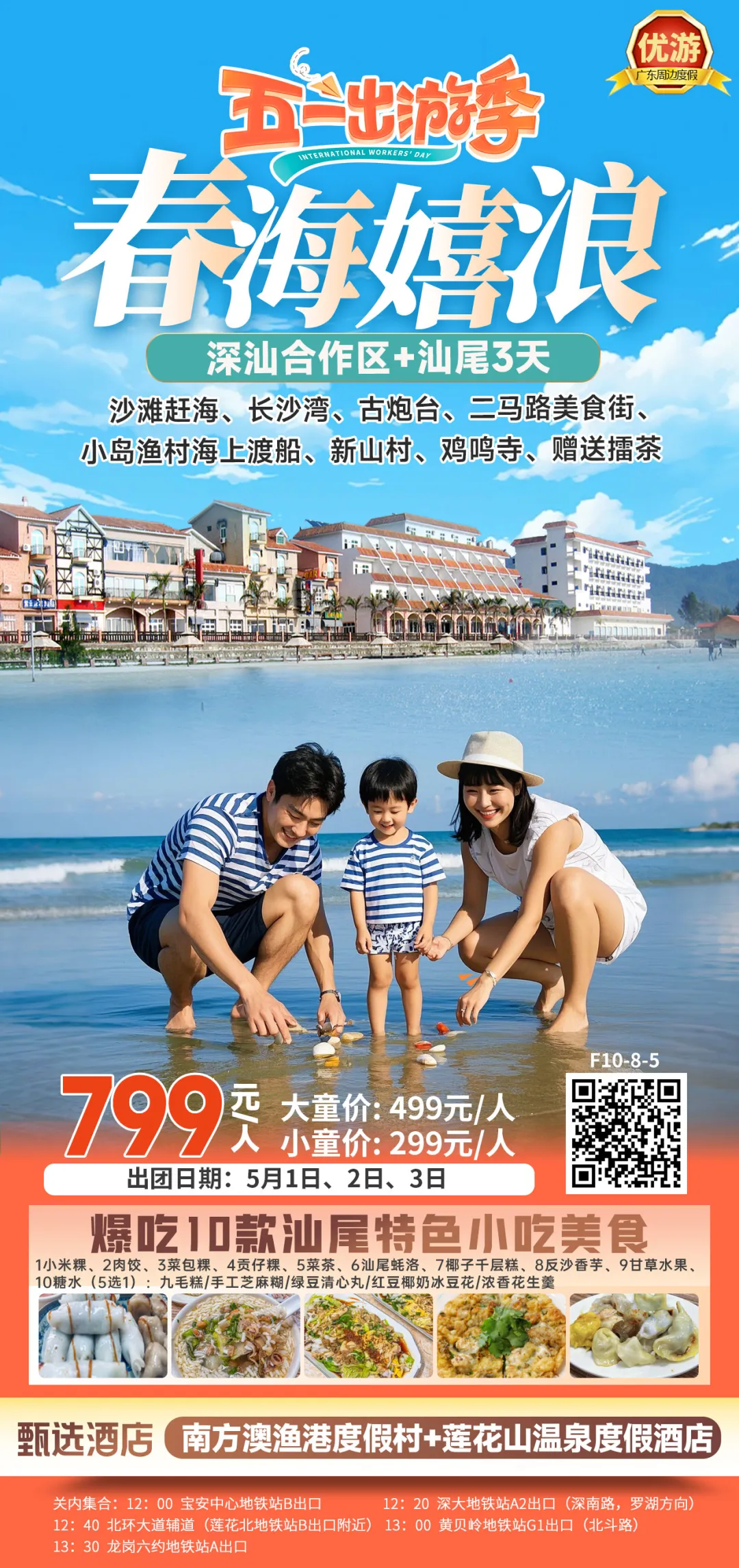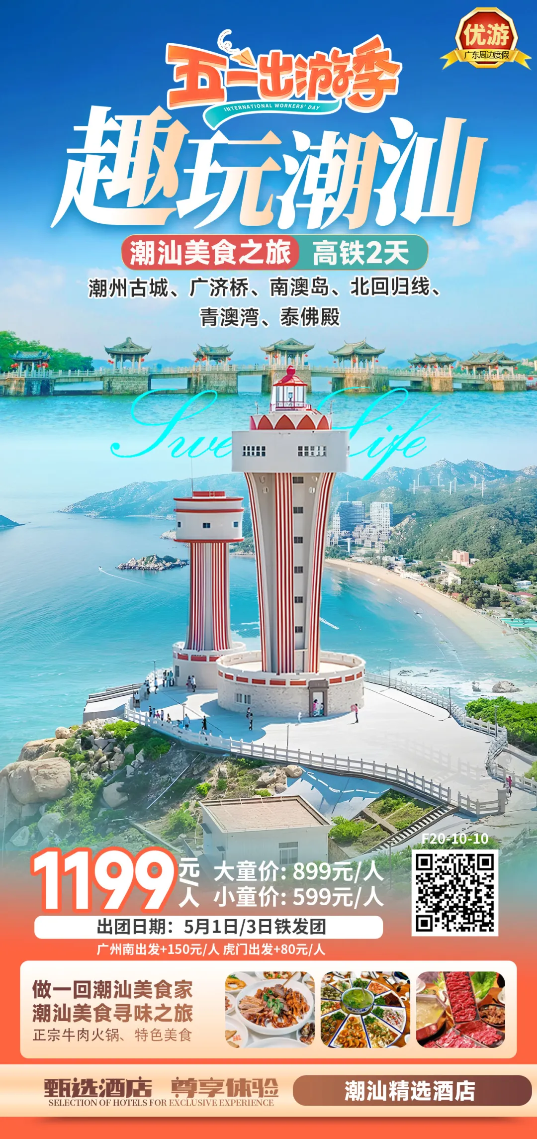 景点:潮州广济桥、南澳岛(海岛)、汕头小公园(骑楼老街)。