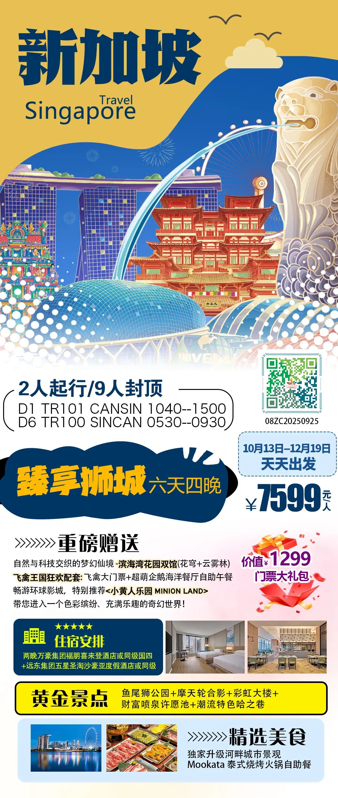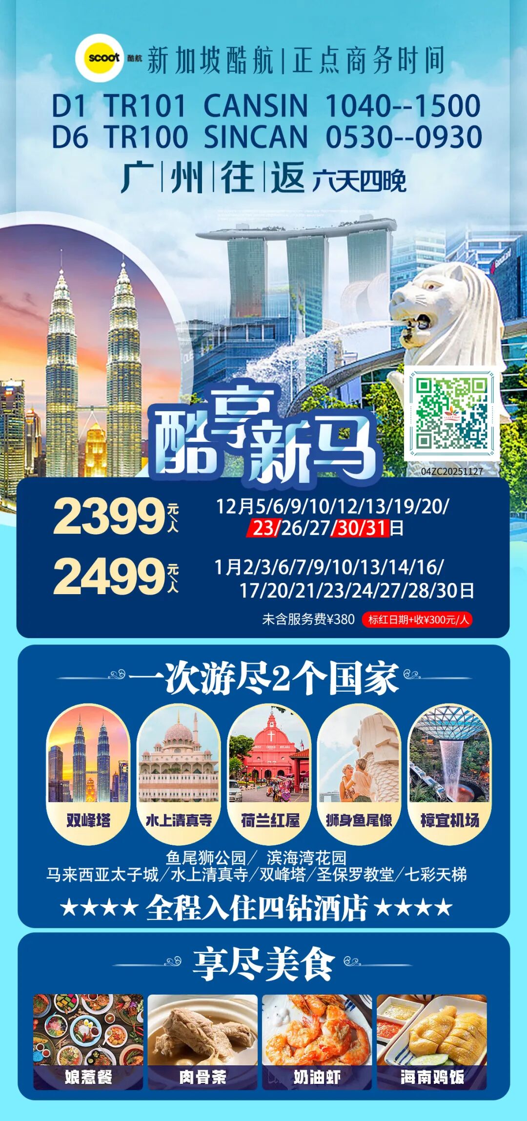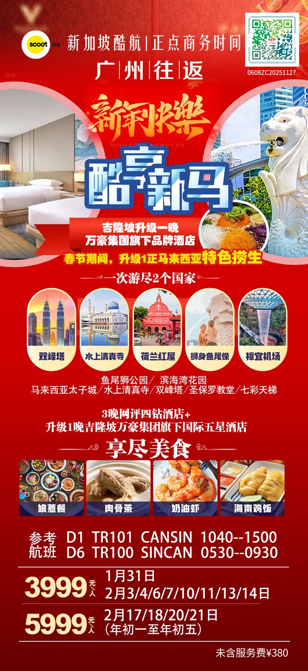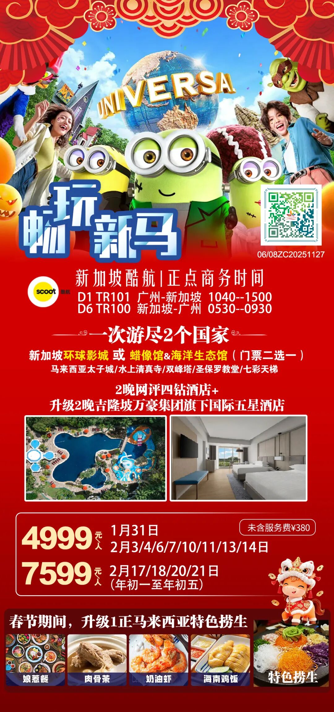 经典线路,2国联游!打卡鱼尾狮/圣淘沙/马六甲荷兰红屋/粉红清真寺/双子塔