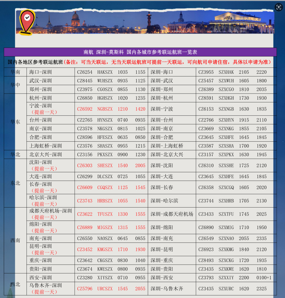 我们推荐此俄罗斯行程可联运,联运费用如下:
