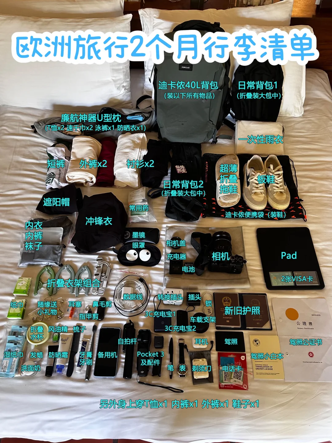 其他:常用药品(感冒药、肠胃药、创可贴)、防晒用品(北欧紫外线强,东南亚闷热,都要做好防晒)、折叠购物袋(欧洲超市不提供免费塑料袋)。