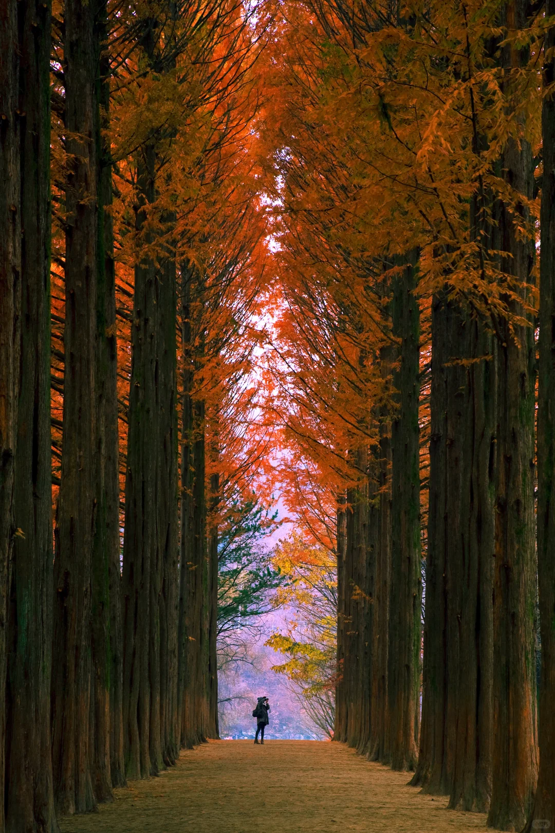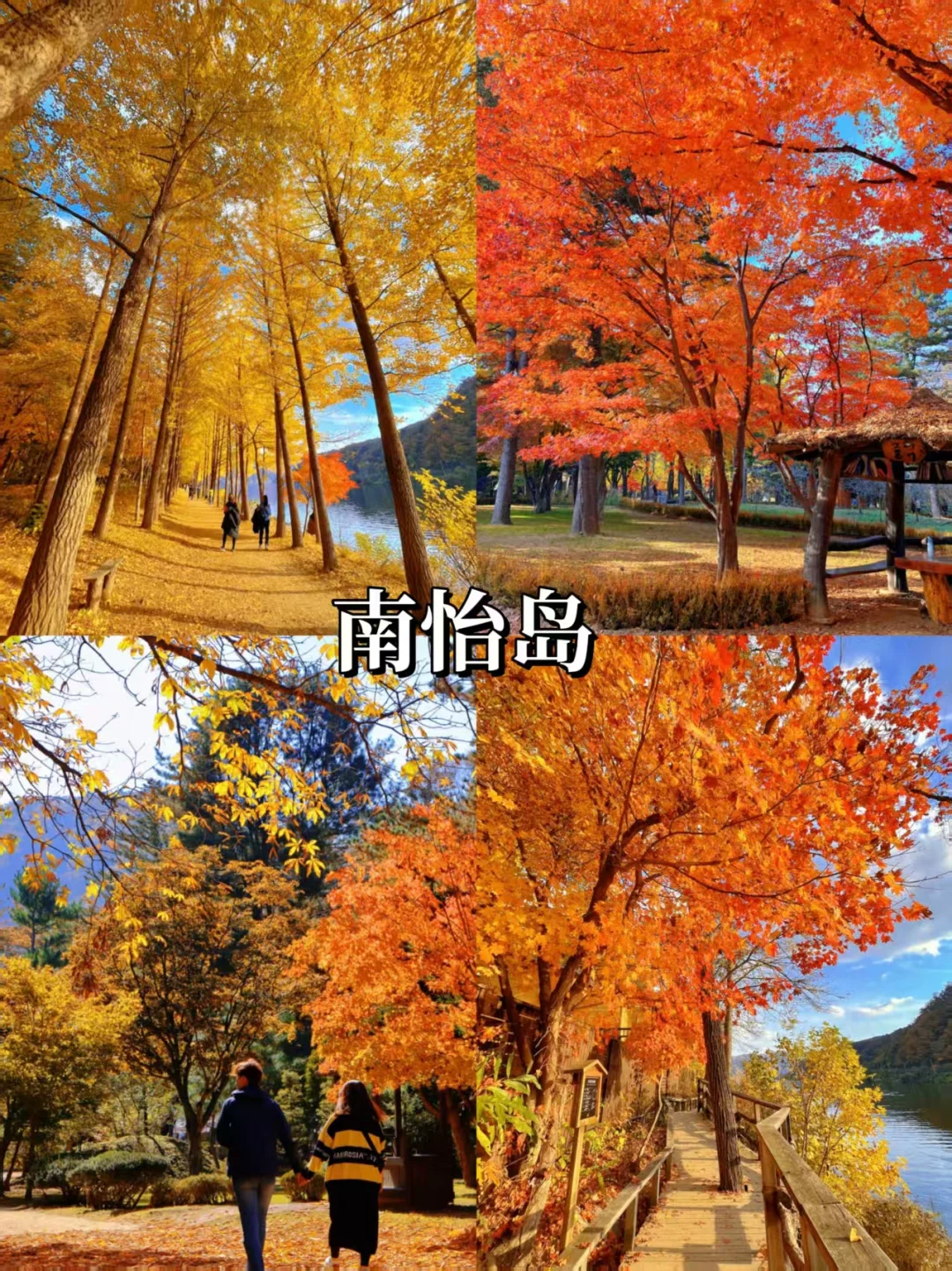 秋日限定枫景暴击:深秋的南怡岛美到窒息,金黄白桦与火红枫叶交织,随手拍都是壁纸级大片。