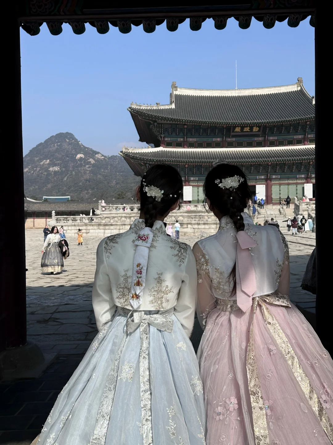 清晨被酒店早餐的韩式小菜唤醒,今天的行程自带“穿越感”!第一站景福宫——作为韩国五大宫阙之首,红墙绿瓦在秋日阳光下发着光,庆会楼的倒影映在莲花池里,勤政殿的石雕细节满满。划重点:穿韩服可免费入园!建议提前租一套,拍照超出片。