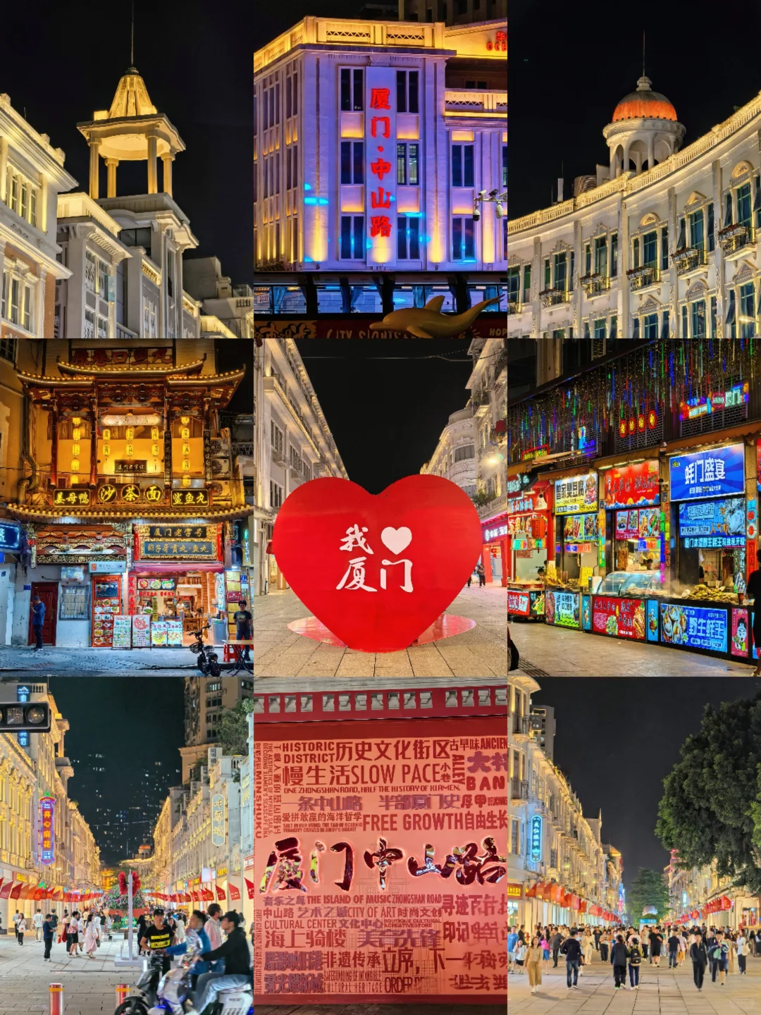 若是你抵达得较早,强烈推荐你前往中山路步行街 。这里是厦门最老牌的商业街,有着南洋风格的骑楼建筑,在灯光的映衬下格外迷人。你可以在琳琅满目的特色商铺间穿梭,感受厦门的繁华与热闹 。还能寻觅到许多文物古迹,像连排骑楼建筑、陈化成故居、闽南民居红砖厝以及罗马式建筑风格的中华圣堂 。漫步其中,仿佛穿越时空,能深切感受到闽南深厚的文化底蕴 。这里的美食也不容错过,沙茶面、烧肉粽、土笋冻等闽南特色小吃,一定会让你的味蕾沉浸在一场美妙的盛宴中 。