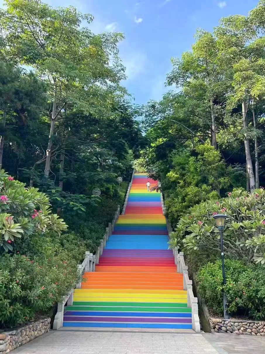 接着前往【梦幻海岸线 - 彩虹阶梯】 。观音山海岸线上有美丽的海滨浴场,还有藏在海边的治愈系「彩虹阶梯」 。这个彩虹阶梯就像是从童话世界里搬出来的一样,七种颜色相互交织,在阳光的照耀下格外耀眼 。沿着阶梯拾级而上,仿佛置身于梦幻之中 。这里还有 INS 风满满的海上城堡 —— 厦门 Tiffany 蓝「水上最美海岸线」 。湛蓝的海水与洁白的城堡相互映衬,构成了一幅绝美的画卷 。站在海边,吹着海风,欣赏着这美丽的景色,让人心旷神怡 。