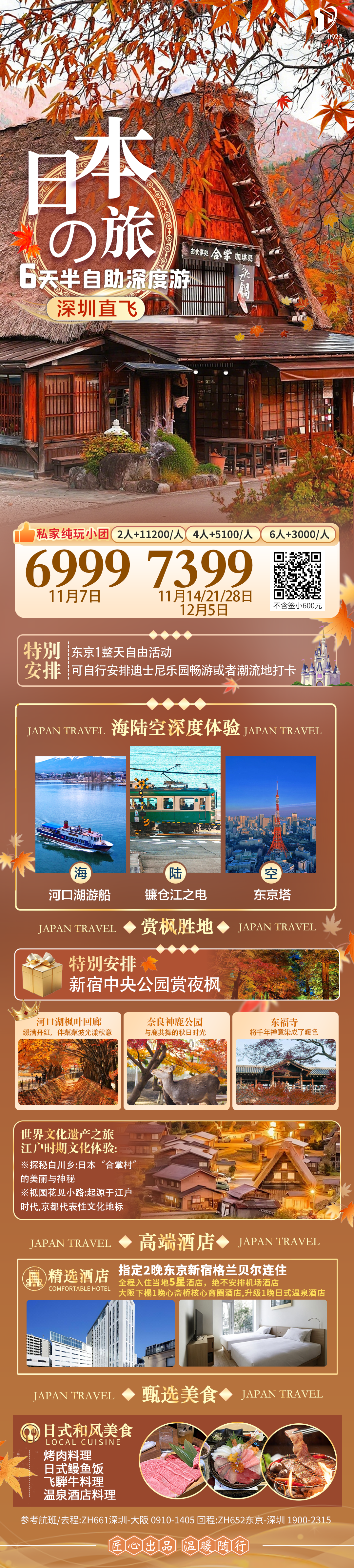 秋日限定·半自助海陆空日本6天游